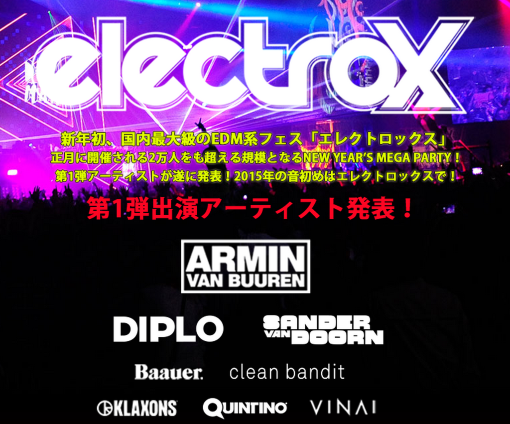 electrox 2015のラインナップ第一弾が発表、Armin Van BuurenやDiploが来る!