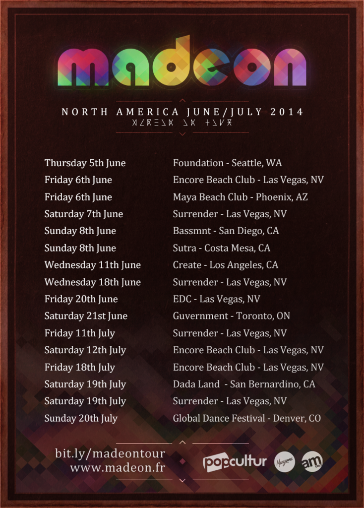 以前から少しづつ告知は出てはいたのですがmadeonの北米ライブ日程がほぼ決まったようで、先ほどmadeon自身からツアー日程の告知がありました。西海岸メインで、一部カナダありといった感じでしょうか。半分くらいはレジデントをしているラスベガスのクラブですね。EDMファンの方はラスベガス旅行もおすすめですよ。日本から安いツアーも多そう...