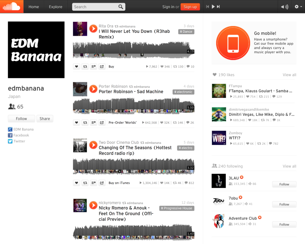 EDM BananaのSoundCloudアカウントを作りました
